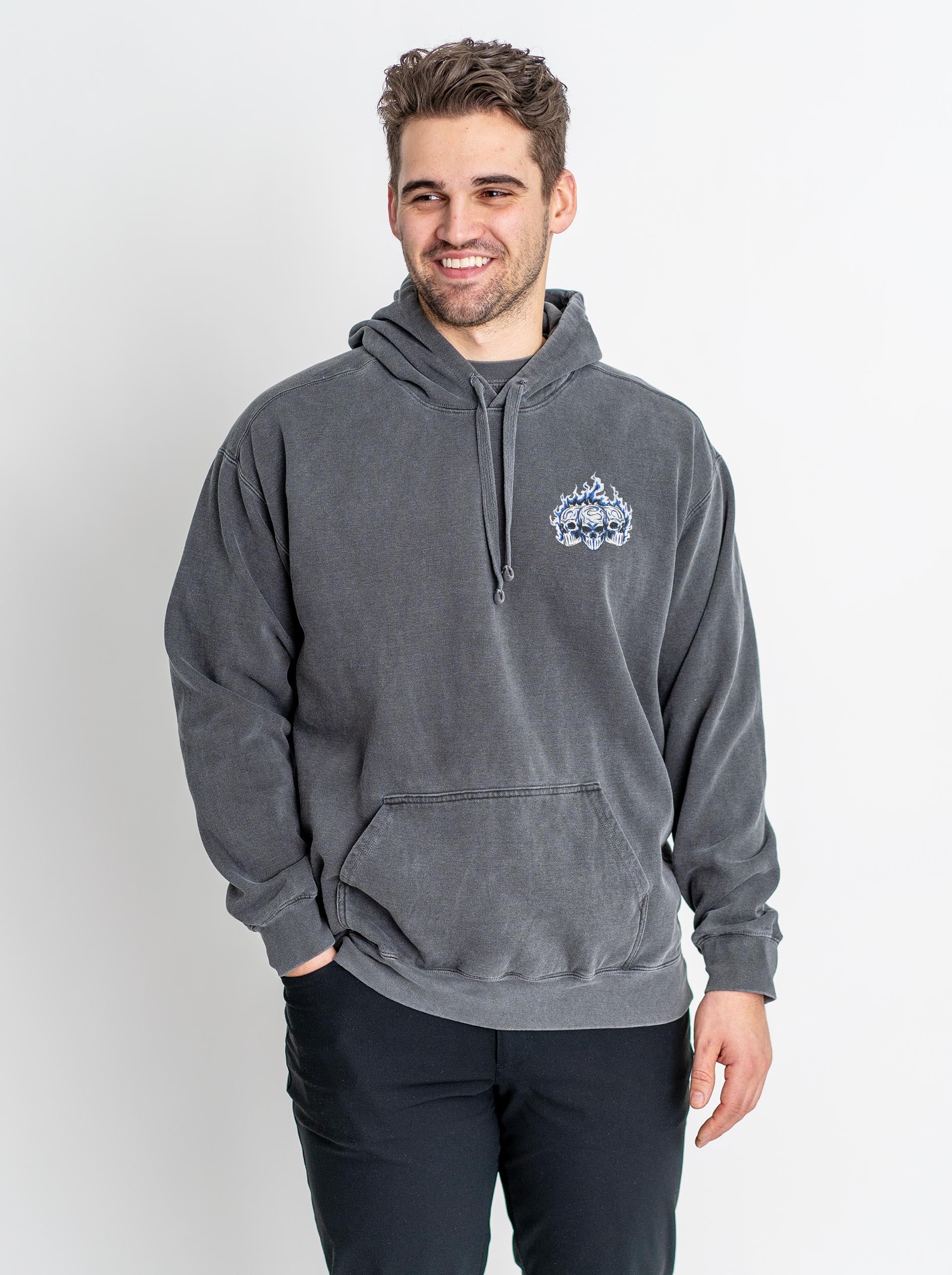 THE FIT: Welcome to your new favorite piece. This premium hoodie is your answer to âwhat should I wear for the game?â but itâs also what youâre gonna lean toward every d*mn time you get dressed. Seriously, we made this hoodie to be the perfect mix of streetwear x sports x comfort. Itâs printed on the fan-favorite Comfort Colors 1567, which gives the ultimate vintage look combined with sheer quality (I especially recommend the Pepper color if you want that vintage washed look to itâŚso good). These are made with 80% pre-shrunk cotton and 20% polyester, which means you can expect a fit that feels great but barely shrinks. This hoodie has a soft fleece interior and a cotton hood with a matching cord. To be sure, the interior is soft, and the exterior is more of that âwashed a thousand timesâ cotton feel. Trust me, this is your new favorite hoodie that youâre gonna wear over and over. Just be sure to follow the wash guide â
