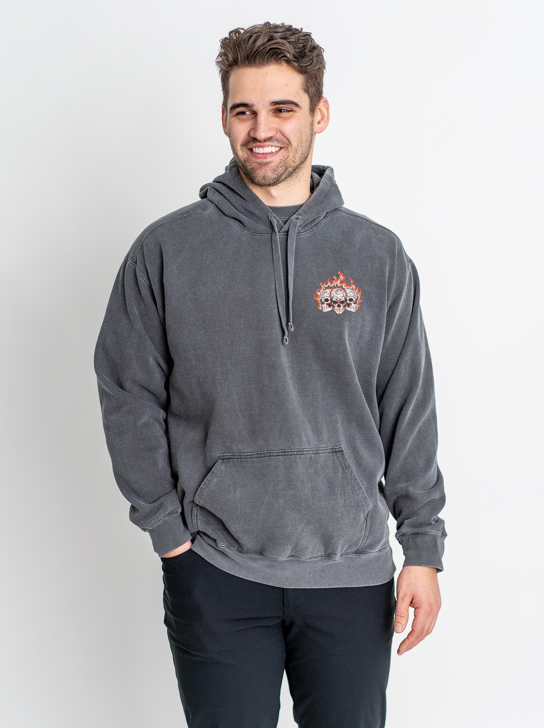 THE FIT: Welcome to your new favorite piece. This premium hoodie is your answer to “what should I wear for the game?” but it’s also what you’re gonna lean toward every d*mn time you get dressed. Seriously, we made this hoodie to be the perfect mix of streetwear x sports x comfort. It’s printed on the fan-favorite Comfort Colors 1567, which gives the ultimate vintage look combined with sheer quality (I especially recommend the Pepper color if you want that vintage washed look to it…so good). These are made with 80% pre-shrunk cotton and 20% polyester, which means you can expect a fit that feels great but barely shrinks. This hoodie has a soft fleece interior and a cotton hood with a matching cord. To be sure, the interior is soft, and the exterior is more of that “washed a thousand times” cotton feel. Trust me, this is your new favorite hoodie that you’re gonna wear over and over. Just be sure to follow the wash guide ↓