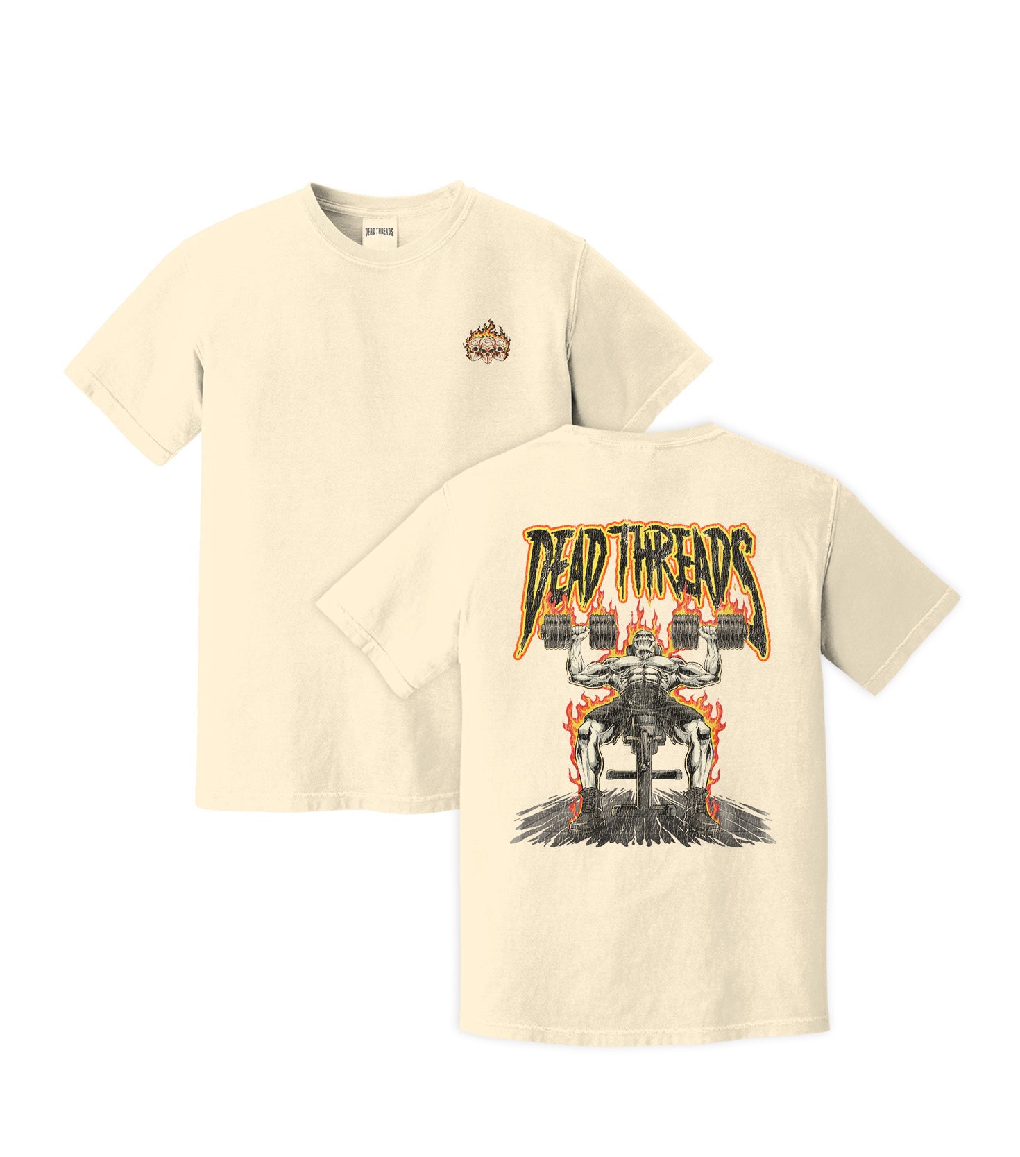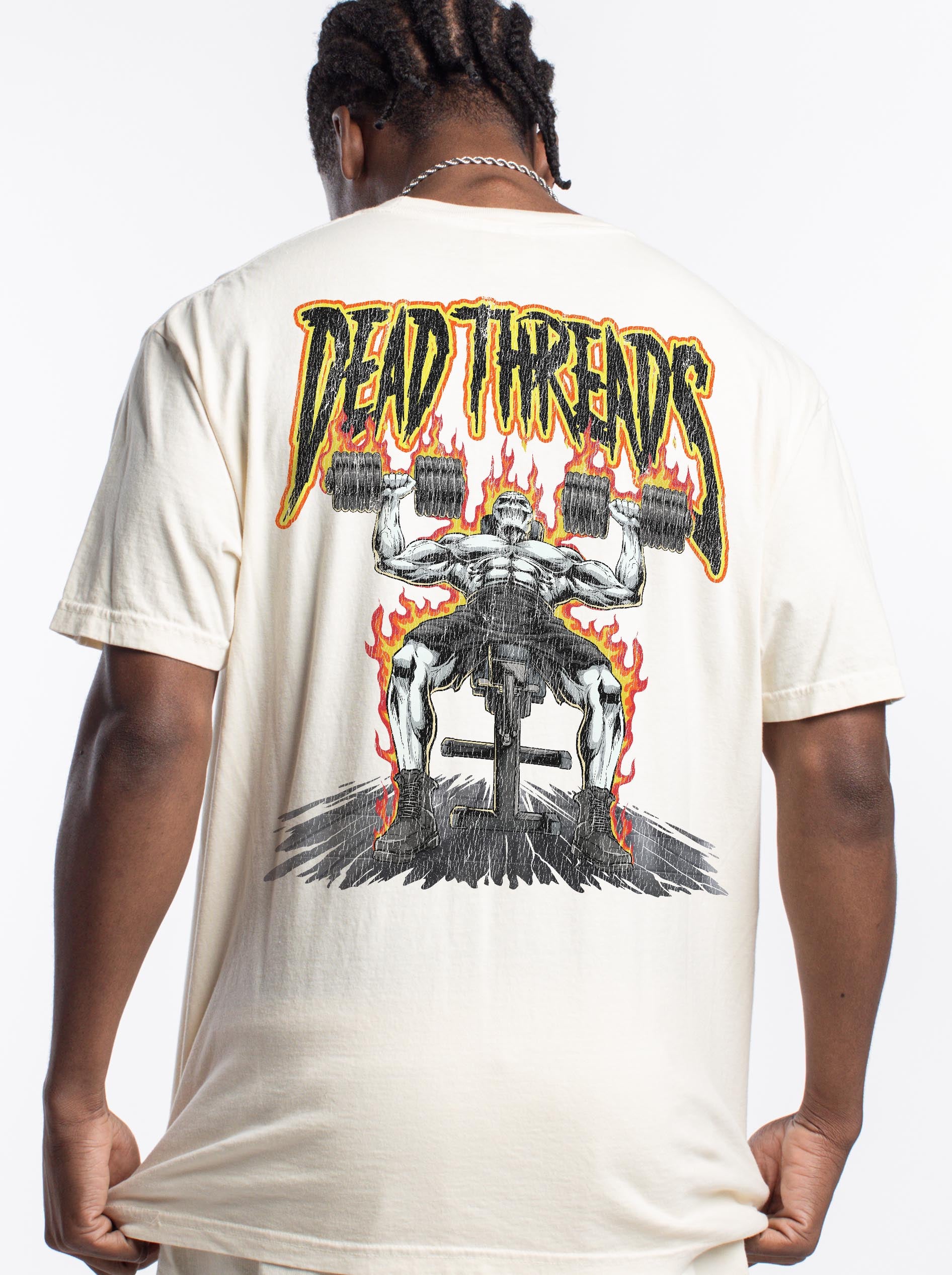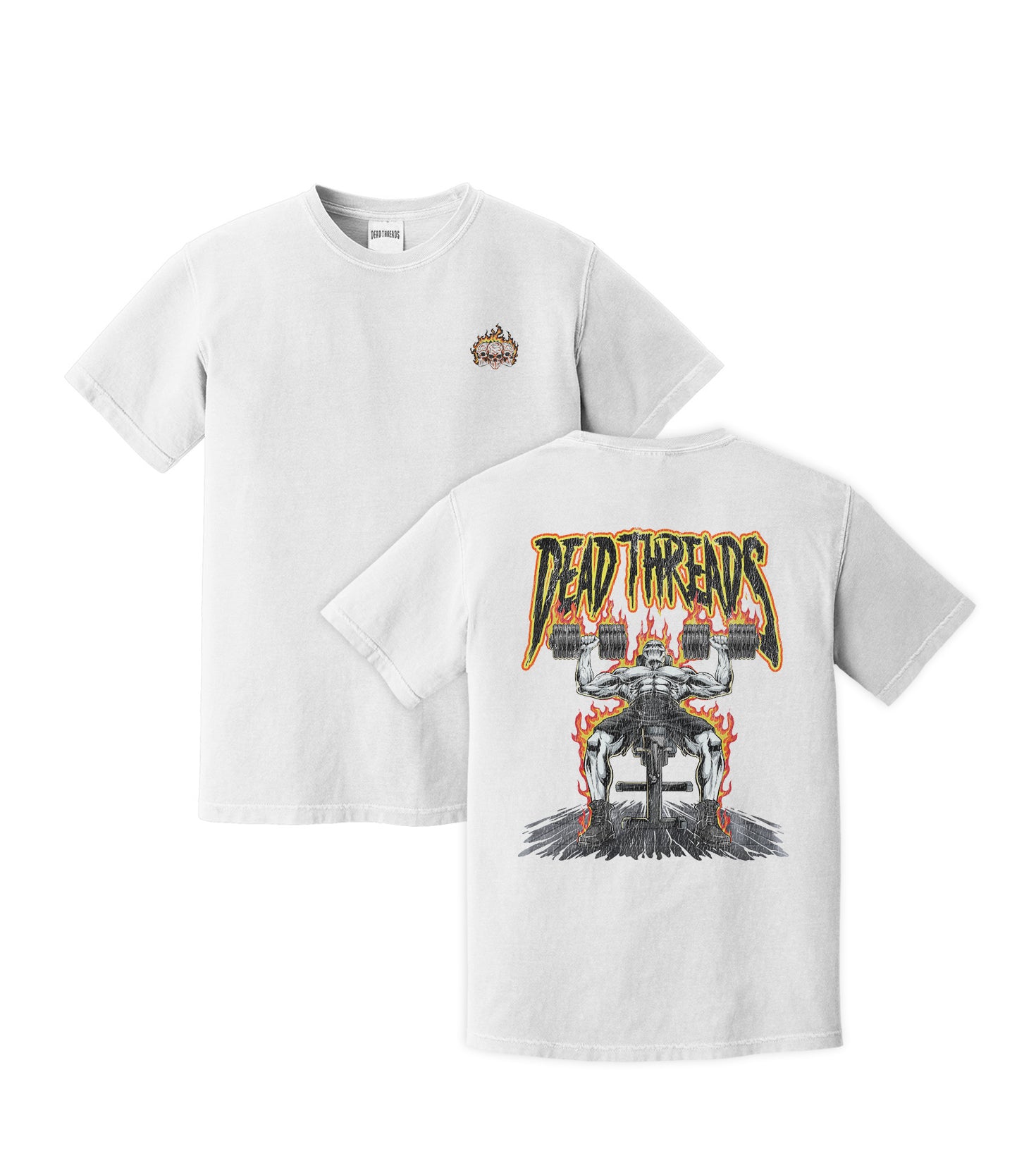 The Dead Threads Lifting Club collection brings actual originality to a scene flooded with copy-paste gear. Front: our signature "3 Skull" logo. On the back? A bold, badass lifting design that will catch your eyes.