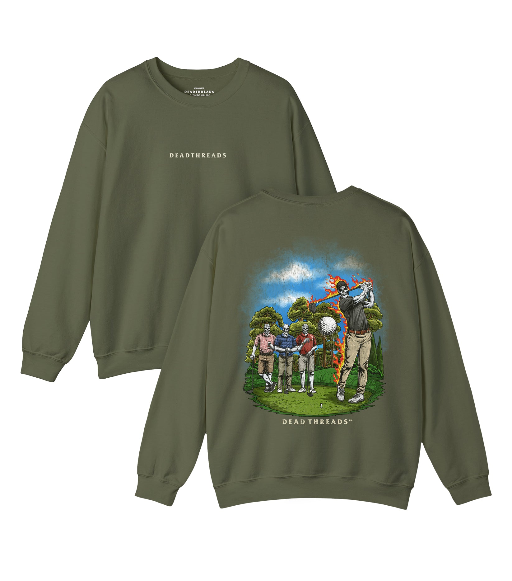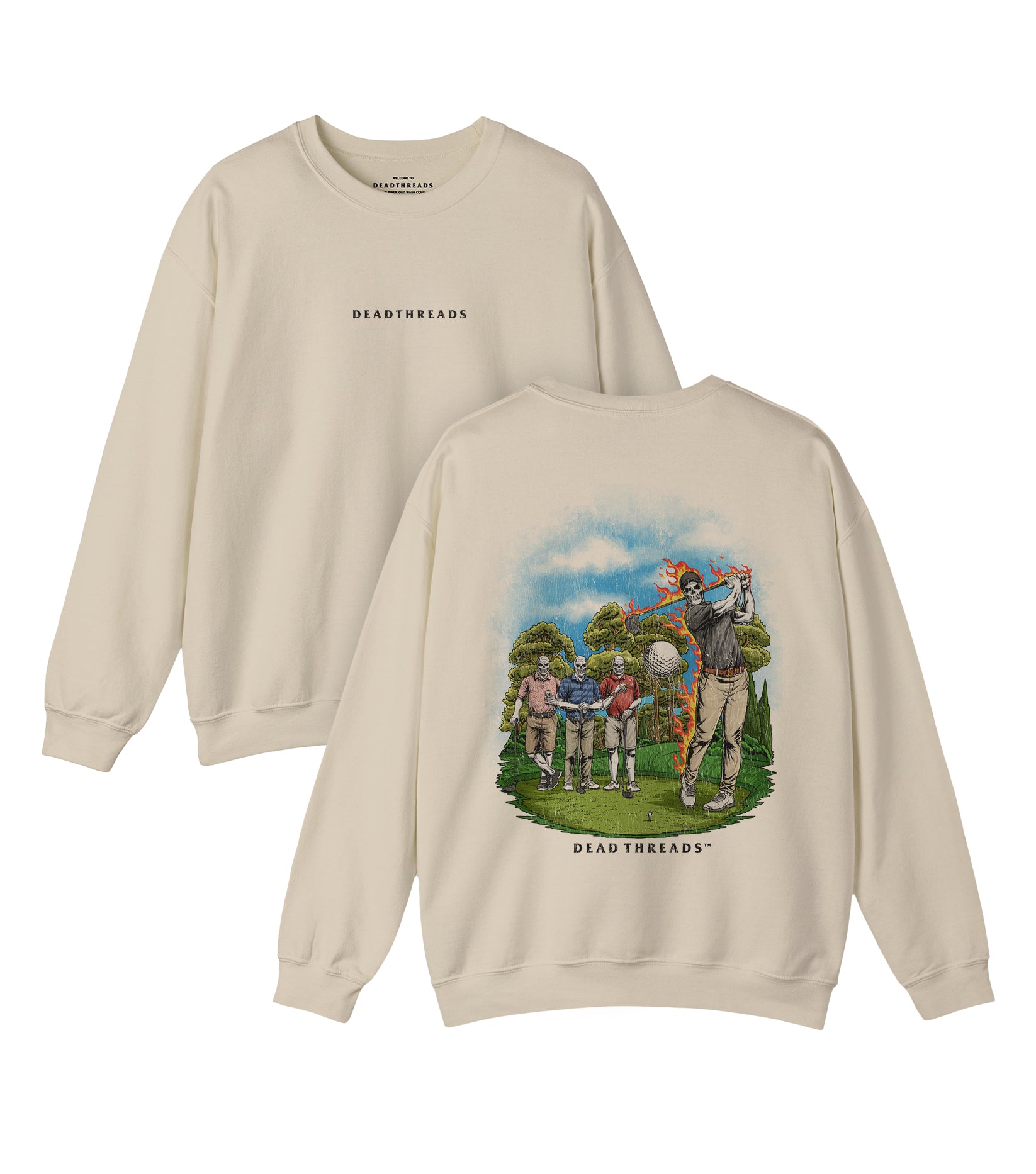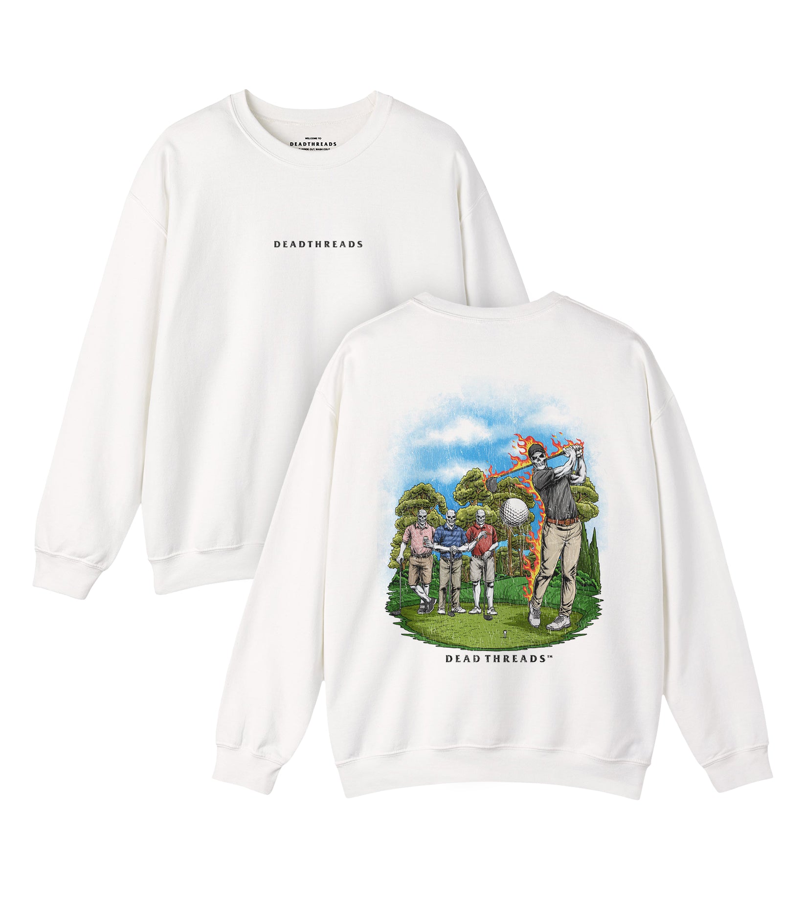 Whether you're out there sinking putts at golden hour, strolling the fairway with your crew, or grinding through that final hole, DEADTHREADS has your back every step of the way. It's the perfect way to show off your love for the game and let everyone know you're always ready for a little adventure, on the green and beyond. And let's be honest, it’s got skeletons on it. Because who doesn’t love a badass skeleton out there swinging clubs and making the most of the day?