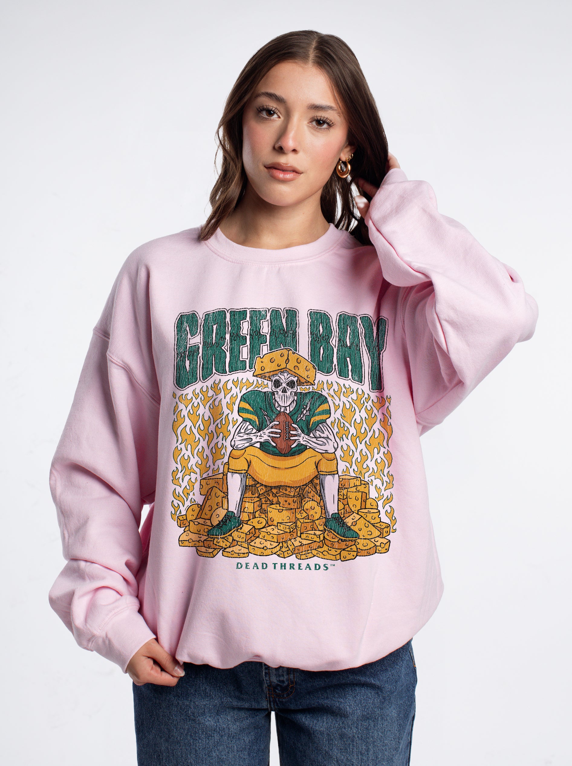 GREEN BAY FOOTBALL v1 CREWNECK SWEATSHIRT - PINK