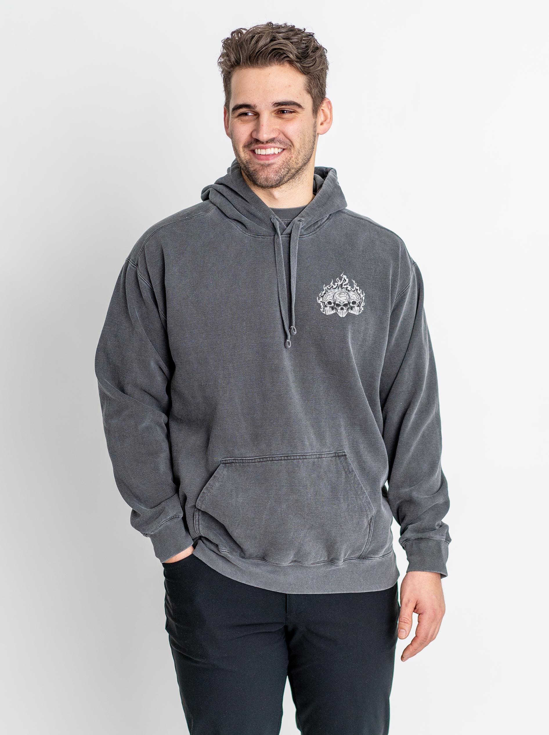 THE FIT: Welcome to your new favorite piece. This premium hoodie is your answer to “what should I wear for the game?” but it’s also what you’re gonna lean toward every d*mn time you get dressed. Seriously, we made this hoodie to be the perfect mix of streetwear x sports x comfort. It’s printed on the fan-favorite Comfort Colors 1567, which gives the ultimate vintage look combined with sheer quality (I especially recommend the Pepper color if you want that vintage washed look to it…so good). These are made with 80% pre-shrunk cotton and 20% polyester, which means you can expect a fit that feels great but barely shrinks. This hoodie has a soft fleece interior and a cotton hood with a matching cord. To be sure, the interior is soft, and the exterior is more of that “washed a thousand times” cotton feel. Trust me, this is your new favorite hoodie that you’re gonna wear over and over. Just be sure to follow the wash guide ↓