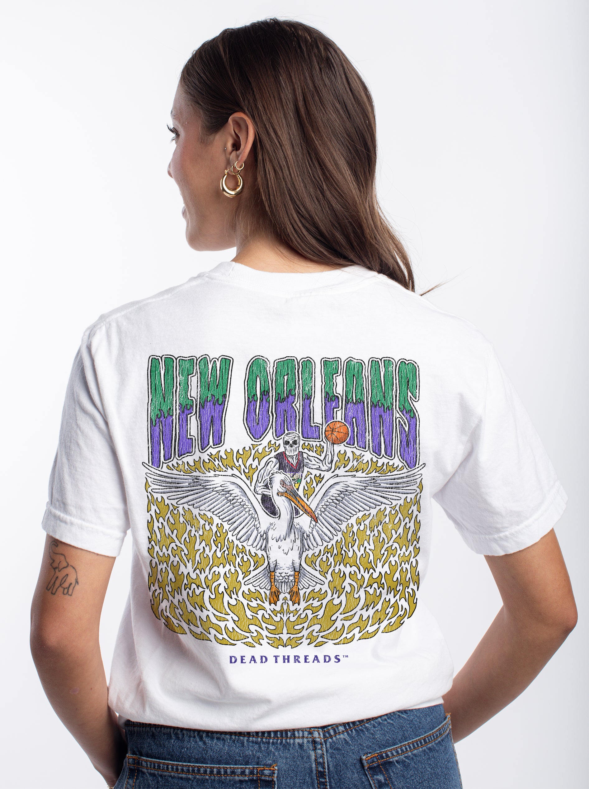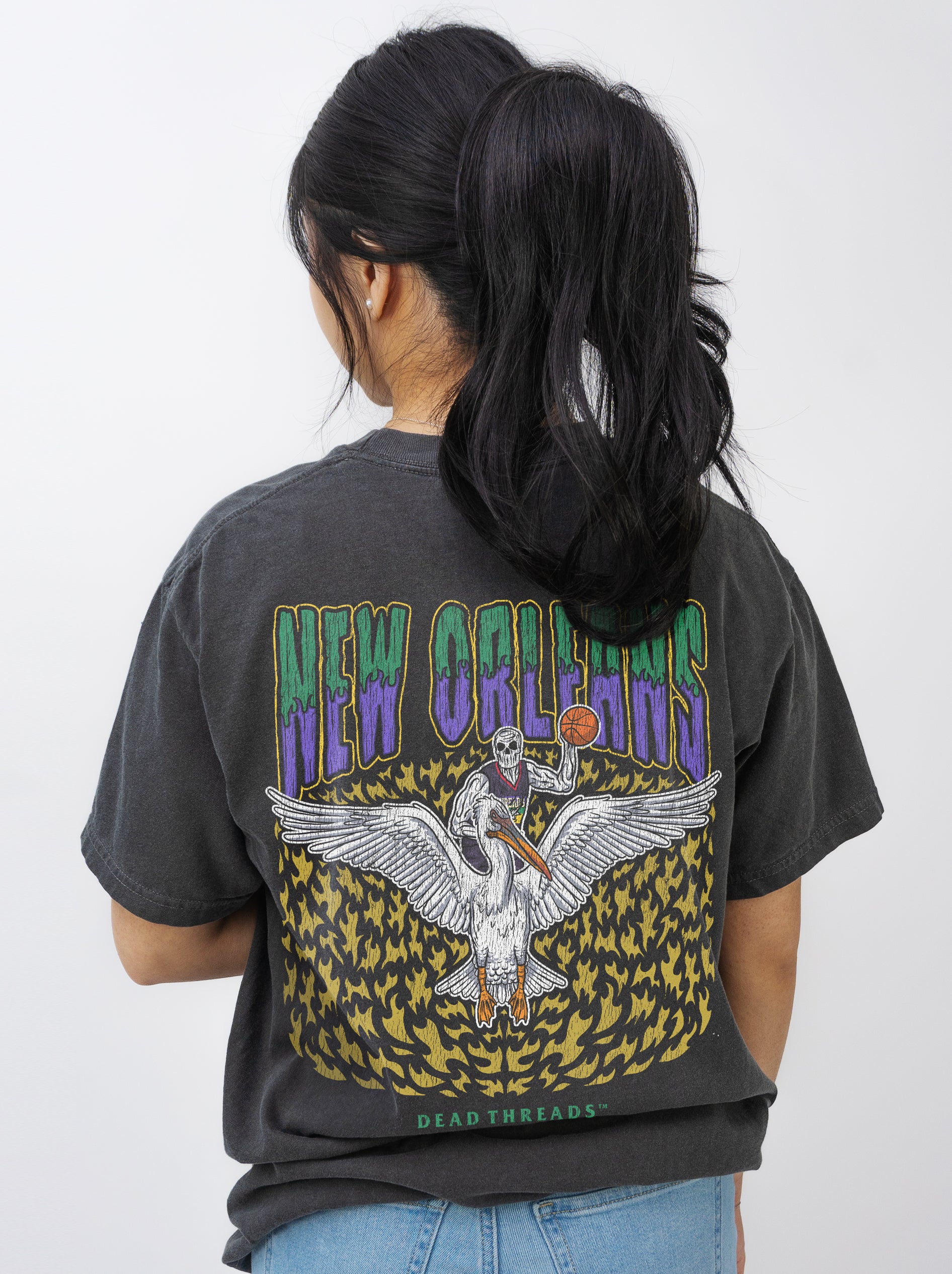 Show your team pride like never before with our all-new back-print designs, spotlighting our iconic "Dead Threads" logo. This minimalist style creates a sleek, unified look from front to back, radiating pure confidence. Whether you're heading to the game or just out and about, this design lets everyone behind you know who the ultimate fan is. And for those cooler days, our premium hoodies offer the same bold style with added comfort and warmth.