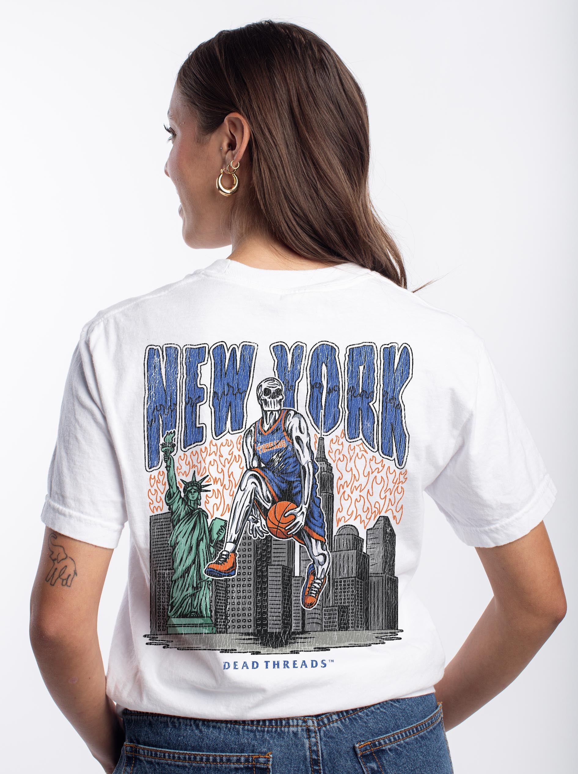Show your team pride like never before with our all-new back-print designs, spotlighting our iconic "Dead Threads" logo. This minimalist style creates a sleek, unified look from front to back, radiating pure confidence. Whether you're heading to the game or just out and about, this design lets everyone behind you know who the ultimate fan is. And for those cooler days, our premium hoodies offer the same bold style with added comfort and warmth.