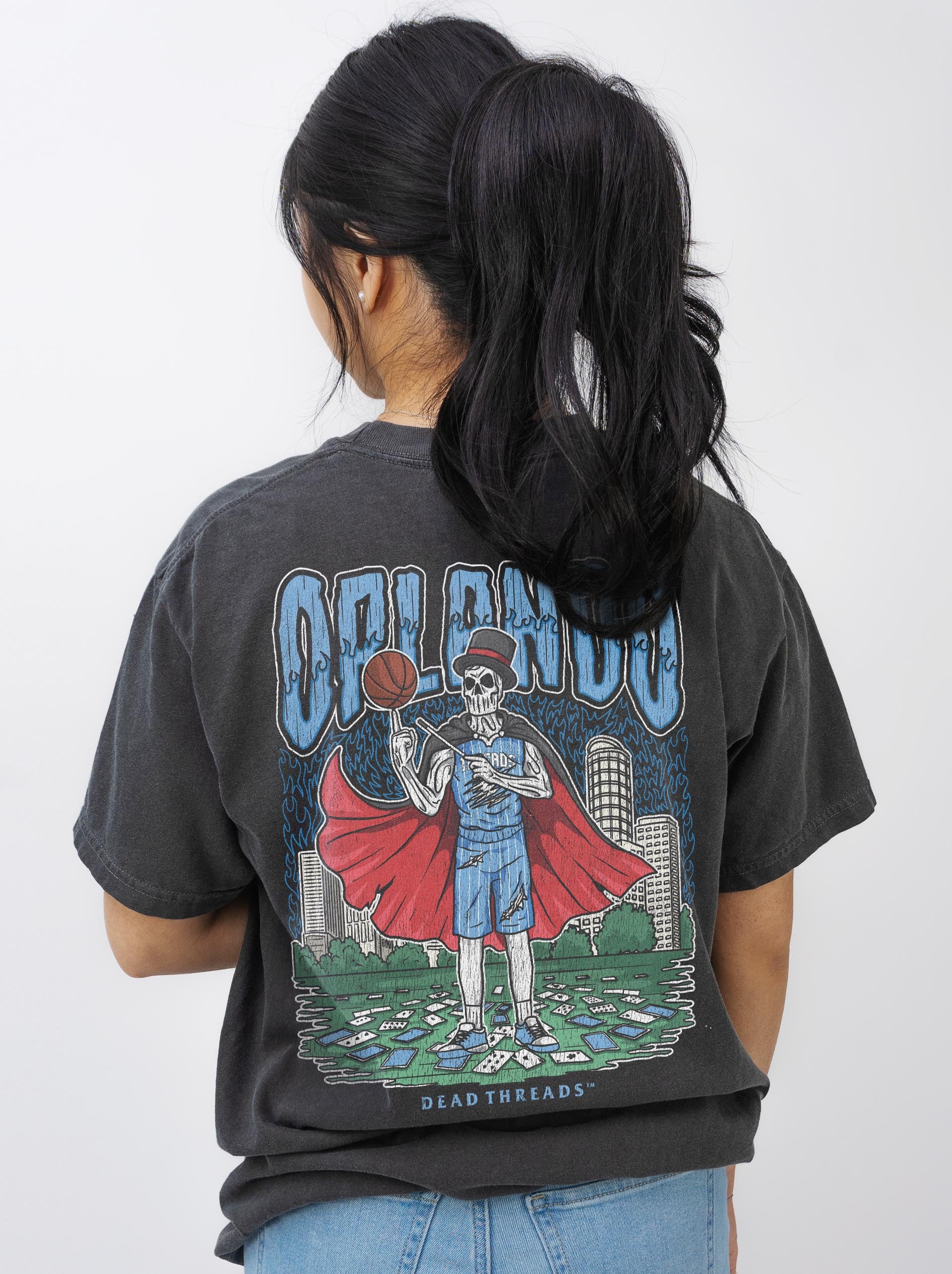 Show your team pride like never before with our all-new back-print designs, spotlighting our iconic "Dead Threads" logo. This minimalist style creates a sleek, unified look from front to back, radiating pure confidence. Whether you're heading to the game or just out and about, this design lets everyone behind you know who the ultimate fan is. And for those cooler days, our premium hoodies offer the same bold style with added comfort and warmth.