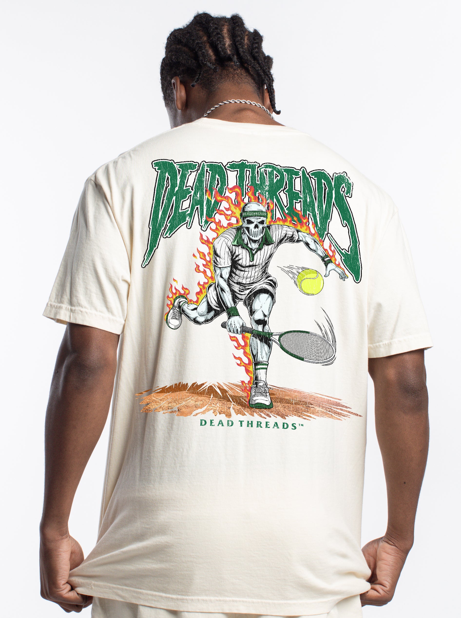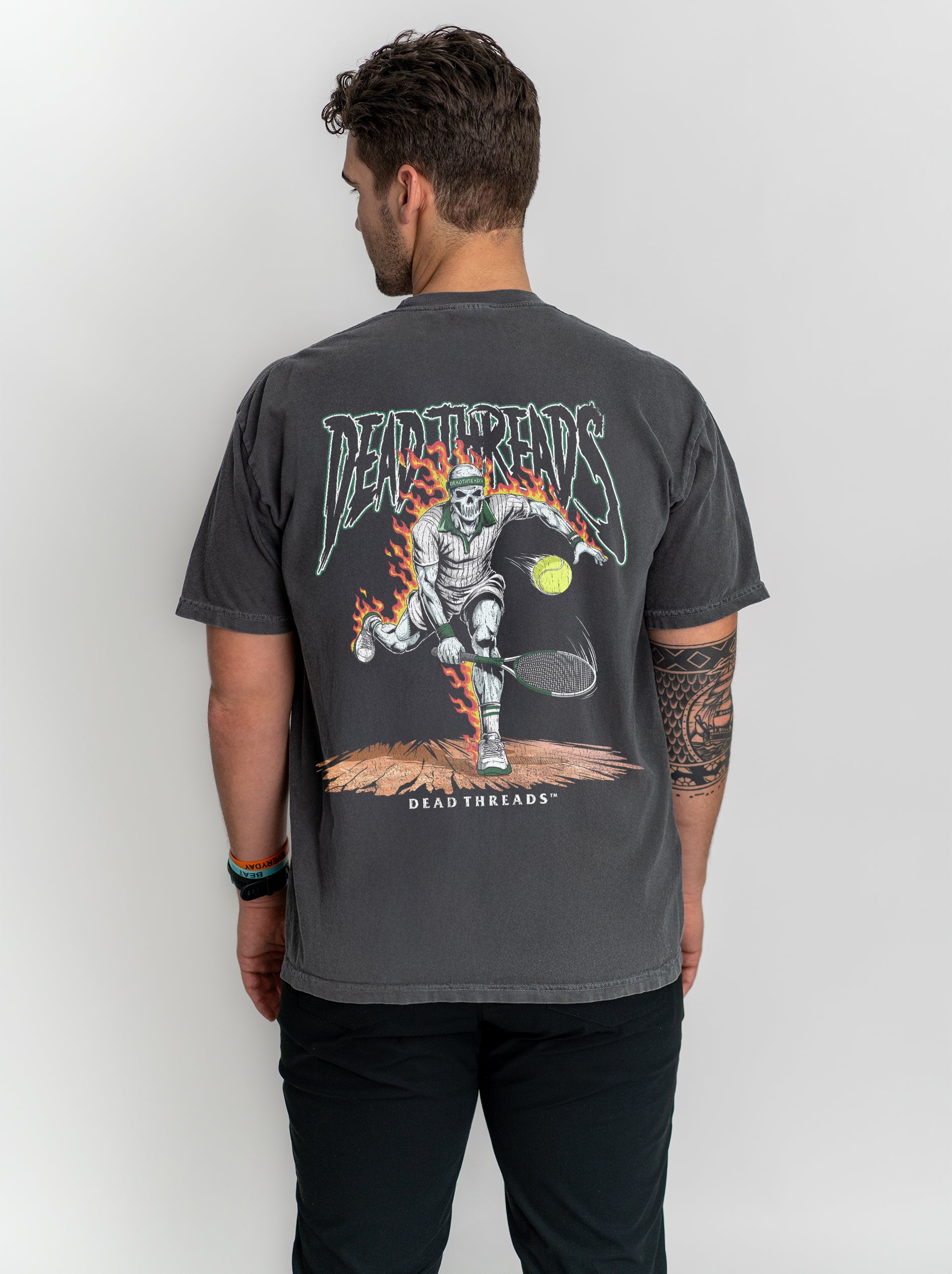 Show your team pride like never before with our all-new back-print designs, spotlighting our iconic "Dead Threads" logo. This minimalist style creates a sleek, unified look from front to back, radiating pure confidence. Whether you're heading to the game or just out and about, this design lets everyone behind you know who the ultimate fan is. And for those cooler days, our premium hoodies offer the same bold style with added comfort and warmth.